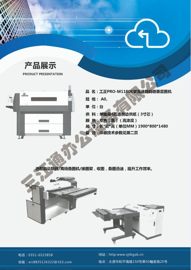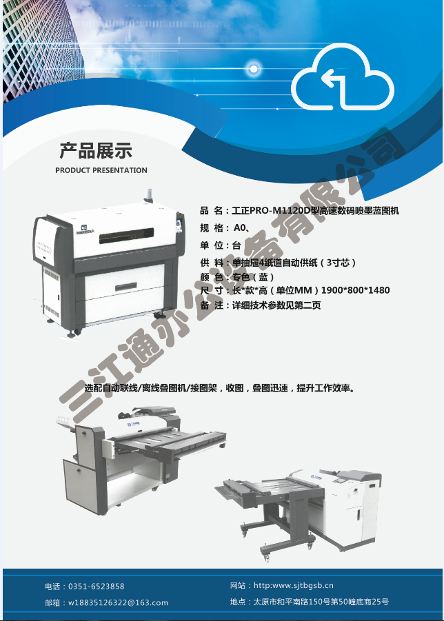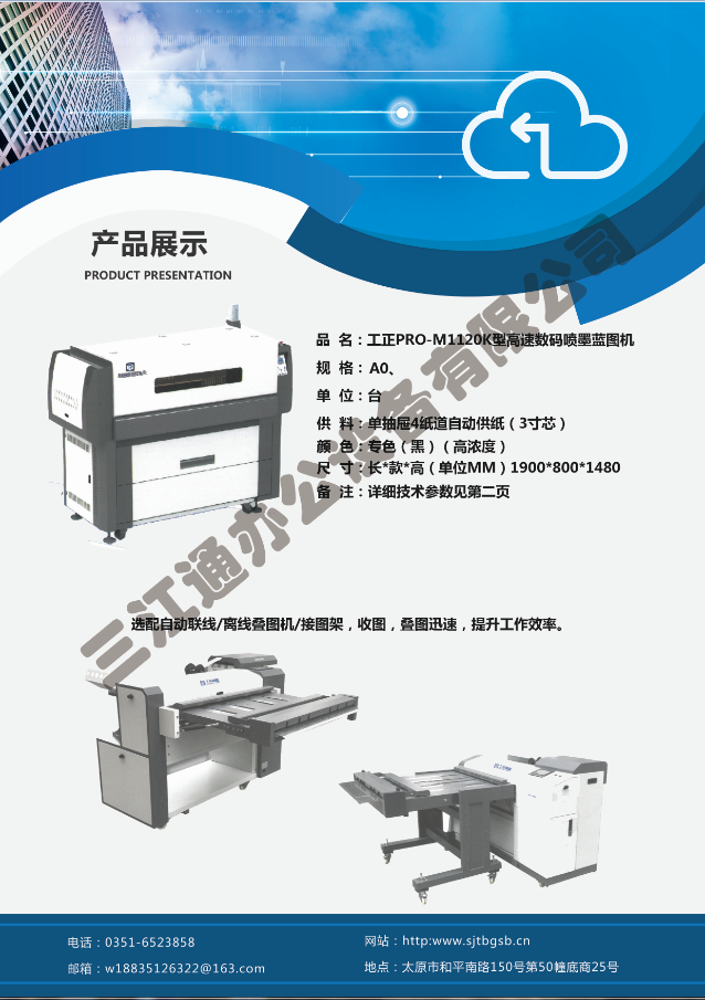 太原市三江通辦公設(shè)備有限公司是一家專業(yè)從事曬圖機(jī)、數(shù)碼復(fù)印機(jī)、多功能打印、復(fù)印、掃描、縮放一體機(jī)、模擬工程復(fù)印機(jī)、繪圖儀、大型掃描儀、電子歸檔設(shè)備、手動、自動成形圖紙檔案密集柜、圖前圖后設(shè)備以及所有制圖設(shè)備耗材供應(yīng)、維修一條龍的實(shí)體企業(yè)。多年來,已與日本、北京、天津、上海、杭州等諸多家廠方多方合作,成為山西>>更多